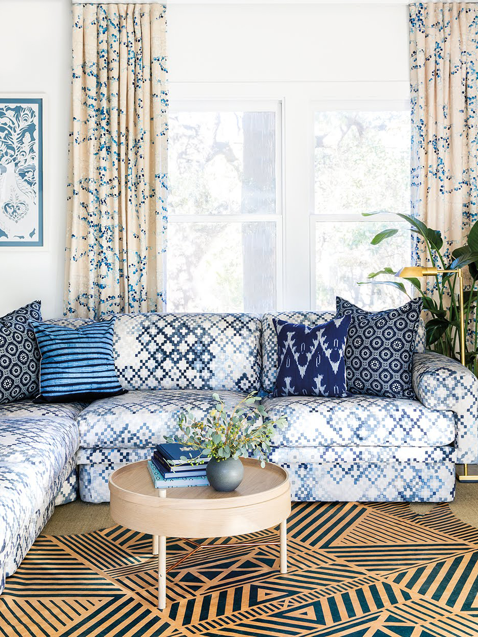 Designer and founder of Surrounded by Color Robin Heller has kept her nine-year-old IKEA sofa feeling fresh by swapping out the cover every few years. Her latest iteration? A custom tie-dyed creation (with matching curtains) from her friends at Upstate. She swears it’s impossible for her three boys to destroy, so the sun doesn’t stand a chance.