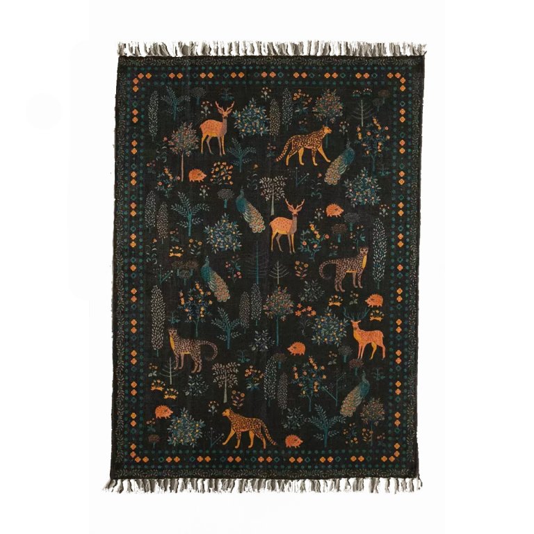 In early folklore, witches were thought to have animal helpers to do their bidding (think: Sabrina and her cynical furry companion, Salem). But if you’re not a pet person, simply roll out this cotton rug that’s dotted with woodland habitants.