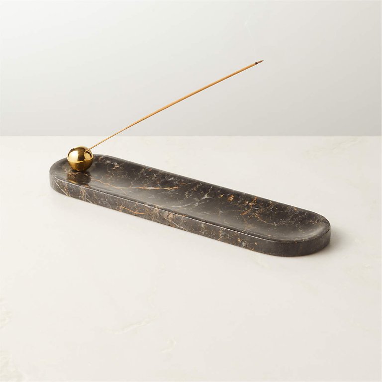 Complement your spiritual practice by burning incense on this stunning black and gold marble burner. The interlocking, mosaic-like pattern of the material makes it simple yet striking.